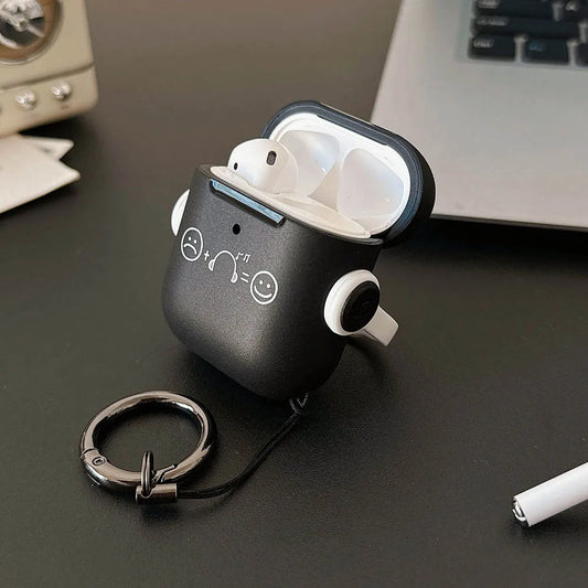 Simple Smile Expression Music Stand Black Earphone Case for AirPods