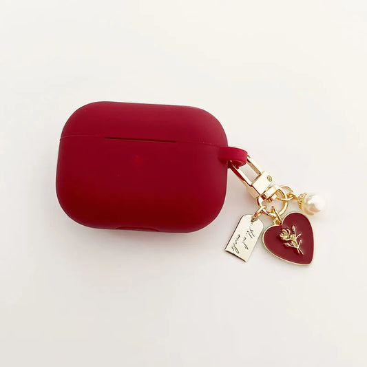 Red Silicone Roses Pearl Airpods Case with Keychain