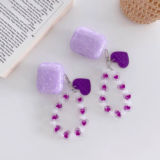 Luxury Purple Shells AirPod Cases with Crystal Love Keychain
