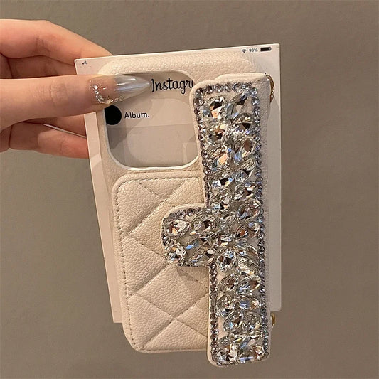 Premium Rhinestone Leather Phone Case For iPhone