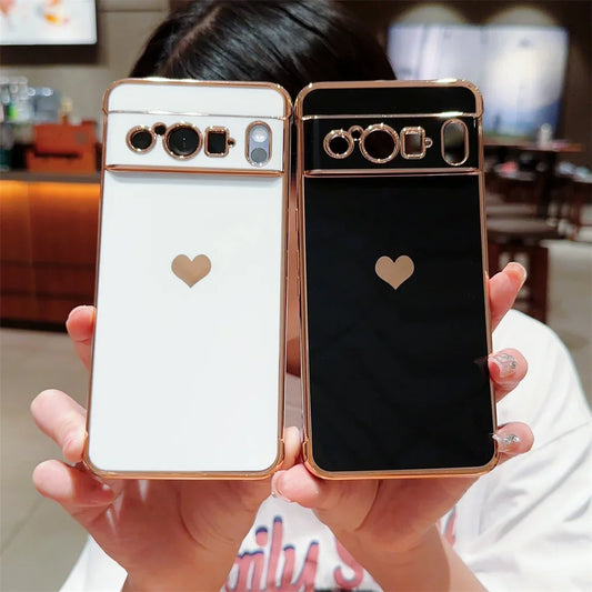 Fashion Love Heart Plating Phone Case for Google Pixel