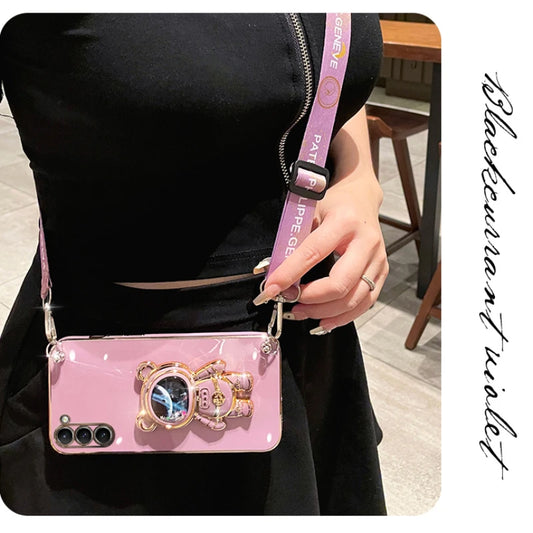 Crossbody Lanyard Quicksand Space Bear Plating Case