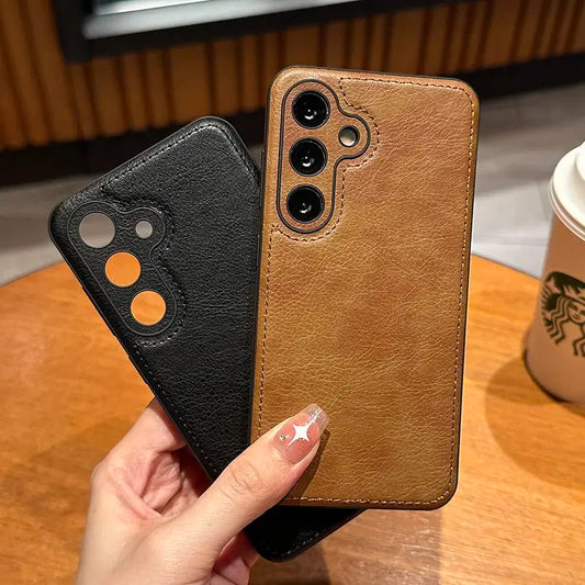 Leather Shockproof Double Color Pattern Slim Back Phone Case For Samsung