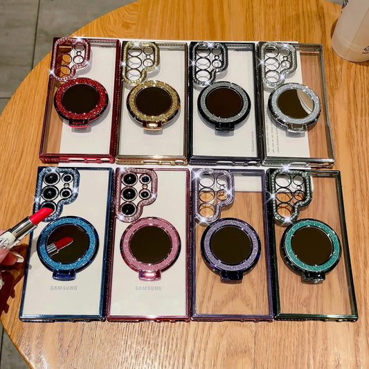 Mirror Magsafe Luxury Diamond Plating Stand Holder Cover Case for Samsung